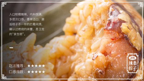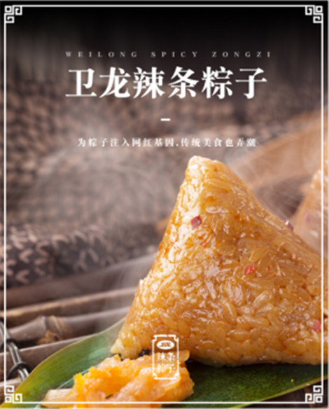 而作为现在食品界的网红兼扛把子——卫龙辣条也推出了独一无二的网红辣条粽子,为粽子注入了网红基因,传统的美食也弄潮,挑逗你的味蕾。