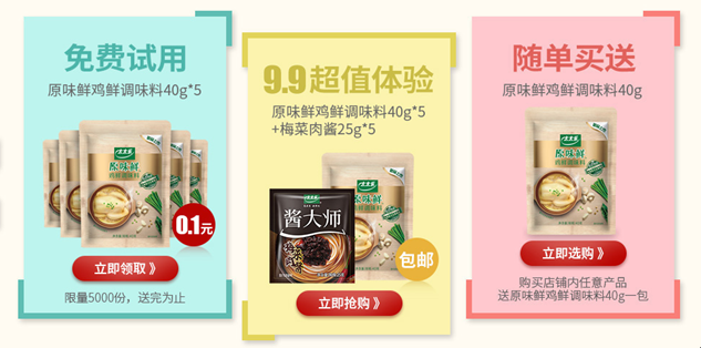 在本次活动中,原味鲜作为太太乐的主力新产品,以0.1元包邮试吃的形式,吸引住大众的眼球。 原味鲜,只采用6种新鲜又熟悉的食材作为原料,一经推出,大受欢迎。本次的0.1元试吃活动,更是让大众对原味鲜有了更多了解。