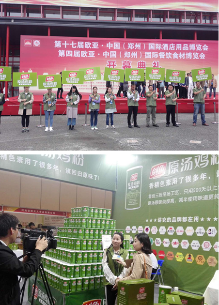 在优质食材展区,剑鱼原汤鸡粉展位人群络绎不绝,咨询不断,其展位扛起“香精色素用了很多年,该回归原味了”的旗号,引起了不少参观者的关注。面对记者的采访,相关负责人表示,剑鱼原汤鸡粉对于食材的把握十分严格,只用500天以上的老母鸡,再加上剑鱼独有的“三段吊汤工艺”,原汤原味纯度更高,因而在市场中很受消费者信赖。