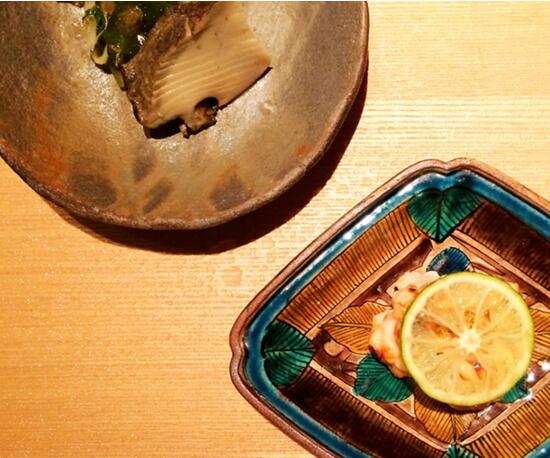 1. 八寸以前八寸的形式呈上,为两款海产:烤白子和清酒蒸鲍鱼。
