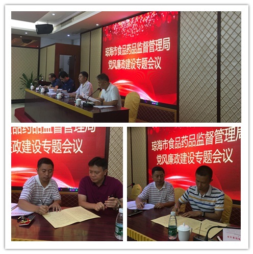为进一步夯实党风廉政责任,筑牢党风廉政建设防线,5月21日,琼海市食品药品监督管理局召开党风廉政建设和反腐败工作会议,层层签订党风廉政建设责任状,会议由党组书记、局长纪涛主持,全局工作人员参会。