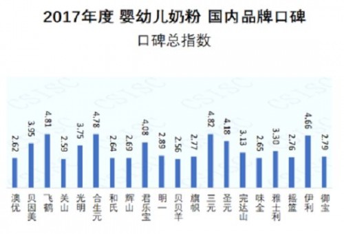 近日,中国统计信息服务中心(CSISC)以第三方视角,从国内婴幼儿奶粉品牌市场中筛选出20个表现比较突出的国内品牌作为研究对象。报告显示:三元、飞鹤、合生元,此 3 个品牌在口碑总指数中位居前三。其中,三元表现最为稳定,以4.82的口碑总指数领先于其他品牌,喜获口碑榜榜首。