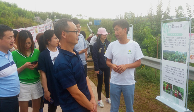 5月24日下午,武胜县政协副主席、民盟副主委刘廷斌,以及省民盟组织的全省民盟机关干部培训班一行80多人,来到四川国邦农业开发集团所属企业大地康柠农业园参观果林基地。考察团听取了大地康柠公司正在规划建设的"柠檬的故事"乡村旅游休闲度假区项目介绍,对大地康柠农业园发展种植业、开发乡村旅游、带动当地农民就业和增加收入等成果给予了高度的赞扬。