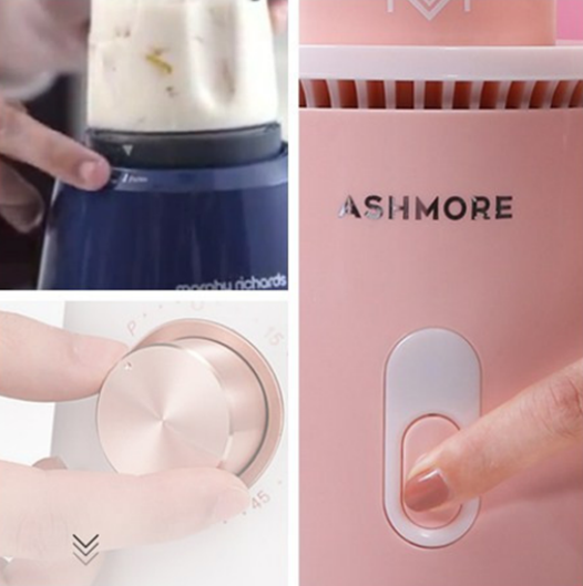 ASHMORE便携榨汁机选用点动的方式开关,松手就停,可以更方便的控制榨汁时间。