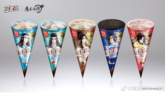 而且这并非《魔道祖师》第一次与可爱多结缘。在3月末,《魔道祖师》预告片上线之际,就曾与可爱多联动,推出五款角色定制包装甜筒。因此选择同一IP素材,也是对于可爱多与IP捆绑的品牌形象延续。