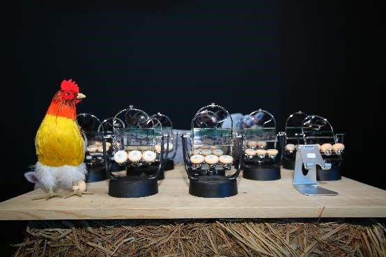 (活动现场的跑步鸡和鸡脚环展示)
