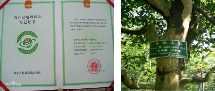 图为:千年枇杷茶被农业部列为“农产品地理标志保护产品”(来源百度)右为古茶树。