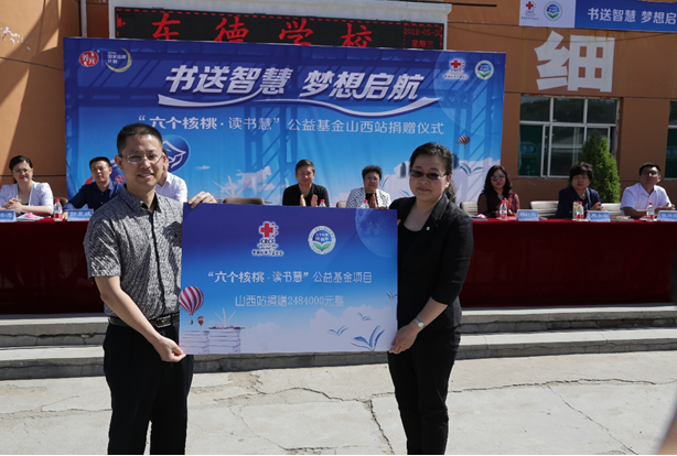 捐赠仪式上,中国红十字基金会对河北养元智汇饮品股份有限公司为“六个核桃·读书慧”公益项目做出的贡献表示了感谢,刘选国表示:“希望通过我们的努力,让孩子能够‘读好书、多读书’,养成阅读的良好习惯,长大成为社会的栋梁之才,为建设吕梁和家乡做贡献。”此外还向全校师生讲述了红十字的由来以及红十字青少年在校的重要作用,希望六个核桃读书慧项目,既是一个促进教育改革、教育公平、缩减城乡差异的公益平台,也希望通过这个平台能有效推动促进红十字青少年工作在学校的开展,受赠学校青少年能传承人道、博爱、奉献的红十字精神,长大后都能成为一个有人道情怀、博爱精神的合格公民。
