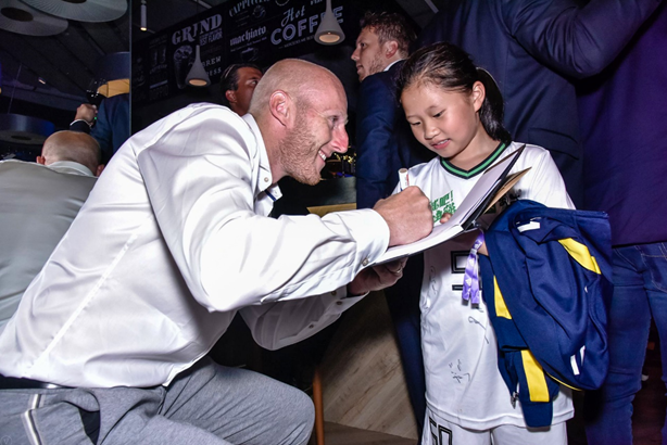 晚宴现场,参加上海国际传奇球星邀请赛的诸多球星也和孩子们进行了有爱的互动,为孩子们加油鼓劲。预祝即将出征俄罗斯世界杯的蒙牛世界杯少年队一切顺利,祝蒙牛“踢球吧!少年强”活动取得圆满成功。