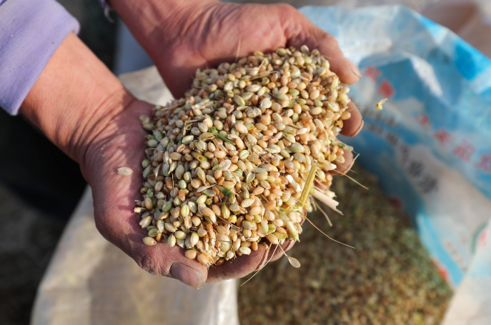 时下,有着“苏北粮仓”之称的江苏省连云港市360万亩小麦喜获丰收,预计平均亩产有望突破450公斤。当地农民抓住晴好天气抢收小麦,确保夏粮颗粒归仓。近年来,良种补贴、农机补贴、农资综合补贴等国家惠农政策提高了当地农民种粮积极性,连云港市小麦连年增产。