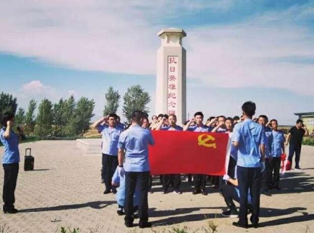 四是参观爱国主义教育基地。利用主题党日组织全体党员到恩格贝生态示范区向抗日英雄纪念碑敬献花篮”,唱国歌,重温入党誓词等,进一步增强党性修养。