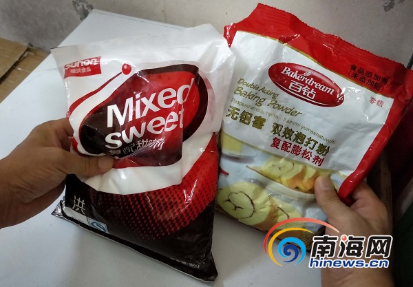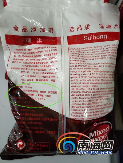 “复配甜味剂”的包装标明含有甜蜜素和糖精钠等。南海网记者 姜飞 摄