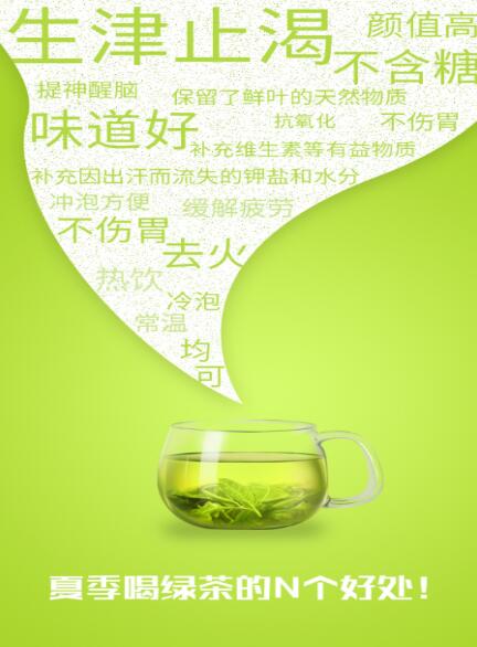 艳阳高照,想想人们出行由室内到室外、由室外到室内,由生活到职场、由职场到生活,最担心的除了晒黑就是中暑。怕晒黑有防晒霜,解渴时候怎么办?别忘了,一杯既健康,又有滋味,还能清凉去火、生津解渴的绿茶正当时。
