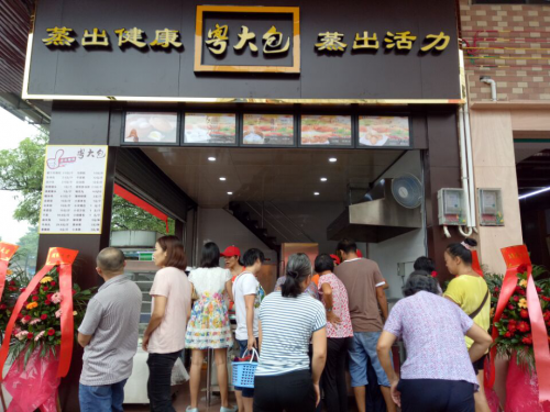 粤大包包子店有几十种特色包子和十几种营养粥品,是上班族们的福音,他们在上班的路上边走边吃,既营养美味又方便快捷。
