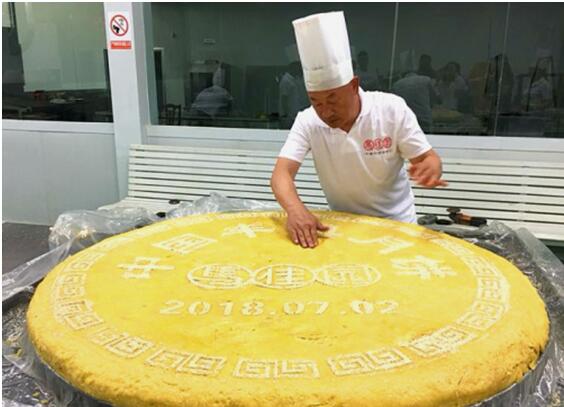 7月2日,内蒙古丰镇市第二届月饼文化节暨隆盛庄首届美食文化节盛大开幕。马佳园作为丰镇月饼代表品牌隆重亮相活动现场,创始人马志勇受邀出席制作的“最大丰镇月饼”喜获上海大世界基尼斯认证。据悉,该“最大丰镇月饼”直径1.39米、总重量达300斤,耗时15个小时全部用手工制作而成,共用去了150斤面粉,到目前为止是全国最大的丰镇月饼。现场由上海大世界基尼斯颁证官为制作人马志勇颁发证书,从颁证官现场宣读的基尼斯大月饼认证书中,记者悉知,马志勇目前是丰镇唯一一位能制作“最大丰镇月饼”的手艺人,是丰镇月饼这项非物质文化遗产的传承人,而这位当年只懂打饼不懂做生意,还因只顾打饼而多找顾客钱被大家亲称为“马大哈”的马志勇如今已然成为推动丰镇月饼发展的中坚力量!