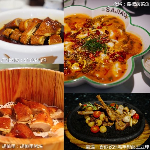 在多元素融合的南部沿海地区,消费者在钟情地道传统菜的基础上,也青睐创意融合菜。广州酒家的桶子豉油鸡,体现了广东人对鸡肉的精准把握,鲜中带甜质感滑嫩;撒椒的撒椒酸菜鱼,甄选咸淡水交界处的鲈鱼,格外鲜嫩;胡桃里的胡桃里烤鸡,别出心裁地藏在鸟笼形状的木桶里,经果木烤制的鸡肉香气独特;宴遇的香煎孜然羔羊排配土豆球,将三花淡奶和羊肋排完美融合,搭配迷迭香、胡椒、小洋葱和番茄等辅料,令人耳目一新。