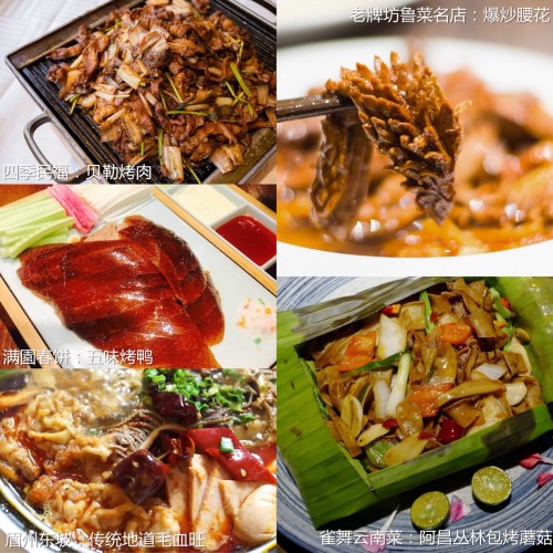 在豁达的北方,食客们既喜欢传统的本地佳肴,也推崇具有地方特色的菜品。四季民福的贝勒烤肉,可追溯到康熙二十五年,京味儿十足;老牌坊鲁菜名店的爆炒腰花,肉质鲜嫩味道醇厚,也体现了山东大厨跟火抢味的功力;满園春饼的五味烤鸭,在秘制的“酸甜苦辣咸”五味酱料的衬托下,激发出独特滋味;雀舞云南菜的阿昌丛林包烤蘑菇带来的是地道的云南味道,清香爽脆;眉州东坡的传统地道毛血旺,热辣下饭,川味十足。
