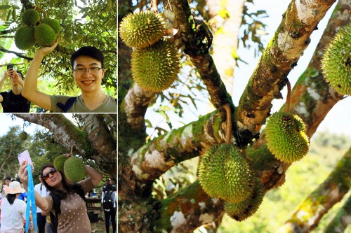 猫山王榴莲果挂满枝头客户们争相与猫山王榴莲合影