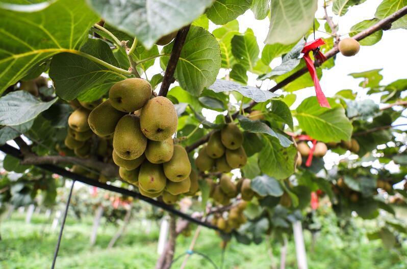 7月6日,在江苏省连云港市赣榆区黑林镇河西村红心猕猴桃种植基地,拍摄即将成熟的红心猕猴桃。