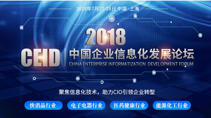 2018CEID中国企业信息化发展论坛暨行业信息化颁奖典礼将于2018年7月27-28日在上海拉开序幕。本届论坛将以“聚焦信息化技术,助力CIO引领企业转型”为主题,共同探讨企业信息化发展方向。300多名业内人士共同赴会,众多国内企业高管和CIO将亲临现场作精彩演讲,分析当前企业数字化,智能化现状并展望未来!
