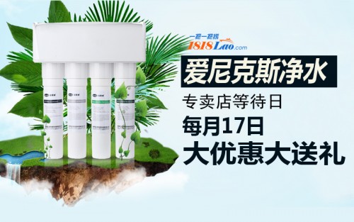 了解了净水设备的类别和净水技术,大家对净水设备应该有个初步认识了,为了家人的健康,净水设备必不可少,到哪里选购才实惠呢?一把一把捞网站是个大平台,一把一把捞爱尼克斯净水专卖店,经营各类环保净水产品,每月17号是一把一把捞爱尼克斯净水专卖店等待日,等待日这天购买净水产品全场八五折,优惠多多惊喜多多!