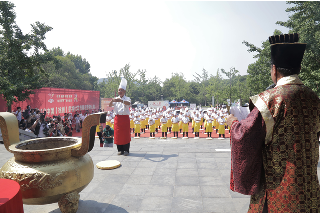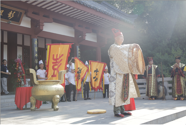仪式上,由彭祖传人领祭,来自全国各地的大师、名厨、企业家、烹饪餐饮协会领导同祭。
