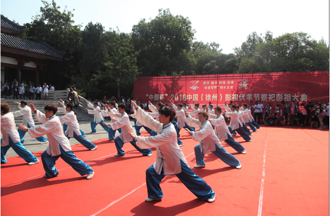 大典上,首先上演舞狮、太极、舞龙等极具特色的节目表演,现场秩序井然,不时响起同祭观众此起彼伏的掌声,每位观众都表现着对彭祖由衷的敬佩缅怀之情。