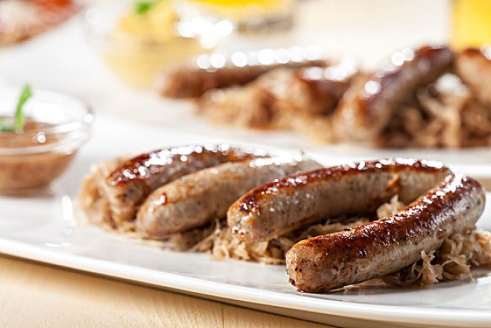 但作为德国经典的纽伦堡香肠,永远是美食爱好者们心中的热门。一般的烤香肠长18厘米,重量在90-110克之间,而纽伦堡香肠只有7-9厘米长,重量也不超过25克。正是因为“体型”较小,一份纽伦堡香肠一般会有六根或十二根,所以也不用担心不够吃。如果搭配酸菜和土豆泥,用芥末酱调味,那将是一顿令人满足的brunch。