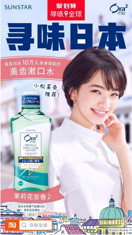 聚划算寻味全球抓住这一生活洞察,经过严格选品后,将Ora2漱口水这一已经风靡了日本的爆款商品作为了此次寻味日本的奇迹单品。