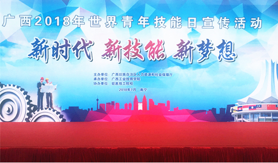 7月15日,由广西壮族自治区人力资源和社会保障厅组织举办的2018年世界青年技能日南宁会场的宣传活动在南宁民生广场举办。此次活动由自治区人力资源和社会保障厅主办,旨在结合世界青年技能日主题,展示人才培养成就,宣传技工教育在人力资源开发工作中的重要地位及技工院校人才培养模式和办学特色、工学一体校企合作成果等。