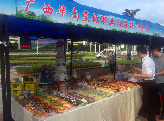 广西华南烹饪技工学校每年都受邀参加,今年由赵志权副校长带领该校数十名学生与驻邕的13所技工院校一起“展办学成果,秀技能风采”。华南烹饪作为一所厨师培训学校,主要展示自己的办学特色项目,活动现场分别展示了甜点制作、面包制作等项目,还有免费的技能培训课堂,邀请广大市民免费试吃,并且能现场参与烹饪面点制作、时尚的花式调酒等各色体验项目。