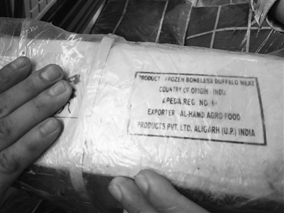 5月9日,省食药监局稽查局副局长古玉才带队,对椰林镇多华村135号民宅进行突击检查。当时,该民宅内只有一名女子和一名小孩。稽查人员说明来意后,查看院内3个长约10米的冷冻柜,发现柜内堆满了冻牛肉,外包装上印有英文字母“INDIA”。经初步认定,这些冻牛肉来自印度。