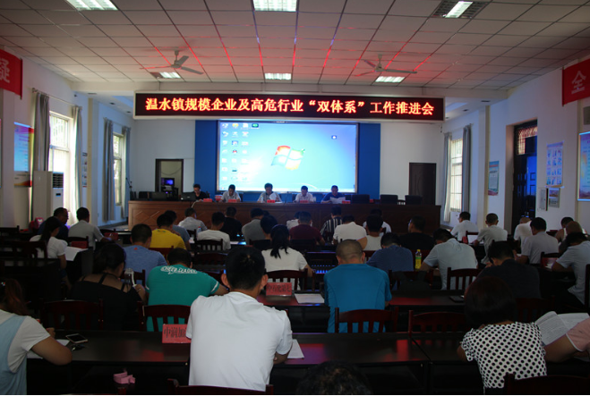 7月18日,温水镇召开规模企业与高危行业“双体系”工作推进会,县安监局主任科员齐敬相、温水镇党委副书记、镇长左庆吉出席会议,来自全镇29家规模企业与高危行业的主要负责人参会。