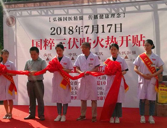 在合作签约前,大家举行了题为《弘扬国医精髓 传播健康理念》的开贴仪式,武汉国粹中医馆馆长龙青峰教授和湖北李氏总会会长、华夏李氏文化产业(湖北)公司、湖北李氏蕲艾产业有限公司李凯锋董事长先后登台致辞。紧接着,龙教授和李董事长为三伏贴开贴剪彩,赢得了全场的热烈掌声。