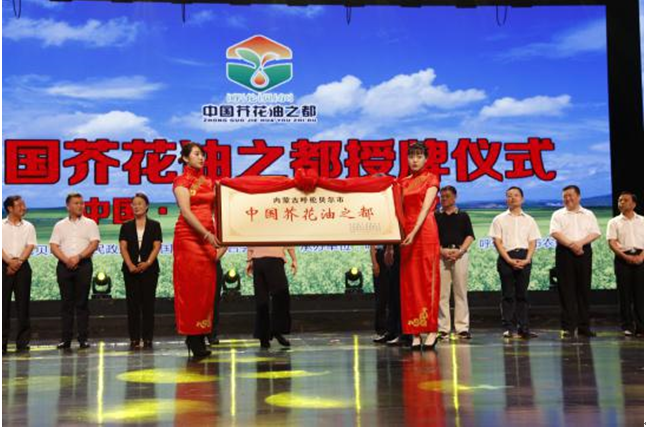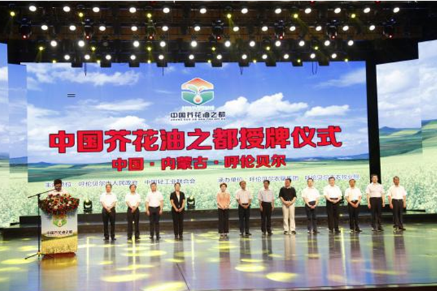 7月19日,“中国芥花油之都授牌仪式”在呼伦贝尔大剧院隆重举行。呼伦贝尔这座以大草原而闻名的城市,自此有了一个新的亮丽名片——“中国芥花油之都”。