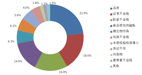 安全卫生问题中,主要项目为食品添加剂超范围或超限量使用、微生物污染等,占未准入境食品总批次的20.9%;非安全卫生问题中,主要项目为品质不合格、标签不合格、证书不合格,占未准入境食品总批次的57.6%。