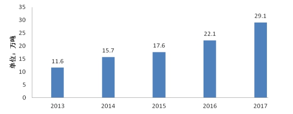 2013-2017年我国婴幼儿配方乳粉进口量
