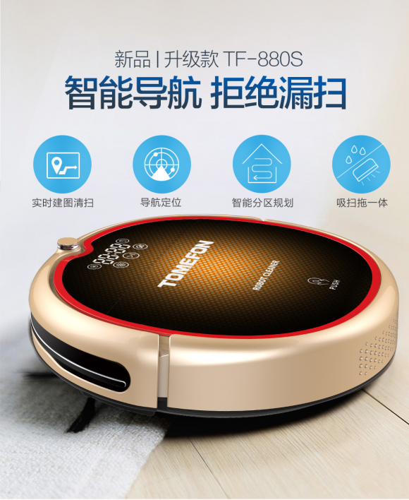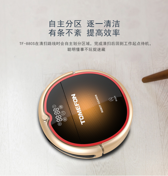 扫地机器人哪个牌子好?斐纳TOMEFON TF-880s扫地机器人有规划、清洁力强、能拖地,自然清洁力强。对技术控而言,这款扫地机器人还打破了人机交流壁垒,只需下达语音指令它就能完成相应清洁动作,简直不要太方便!