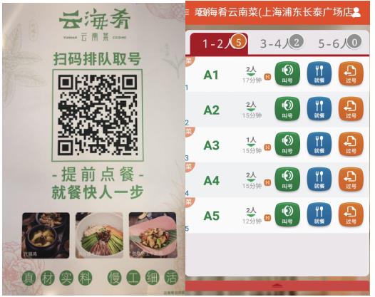 云海肴长泰店所在的长泰广场是上海浦东新的商业中心,云集有近75万高端消费者,高性价比的云海肴自然而然成为该商圈里人气火爆的排队餐厅,但高人气也给店长带来了“甜蜜的烦恼——总有顾客因排对时间太长而流失,他们都是既有消费能力又有品牌认知的优质潜在用户,其高达三成的排队流失率令店长“痛心”不已。有鉴于此,该门店近日对接了智慧餐饮服务商——美味不用等(以下简称“美味”)的预点单功能,大大缩短了用户与服务员对接点菜下单的时间,翻台相应提升,客户排队时长下降5-10分钟,用户体验更好的同时,排队流失现象也得到明显遏制。