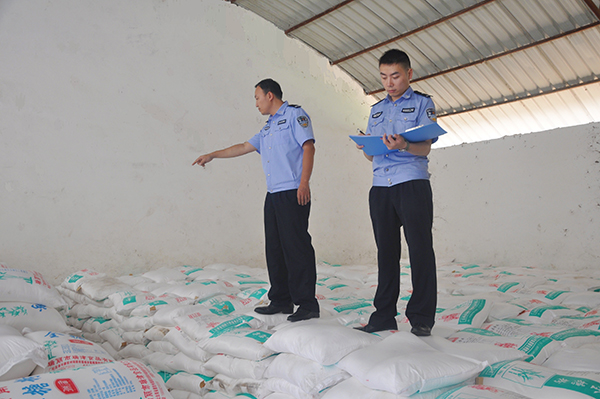 图为:缉私警察正在清点查获的走私食糖 昆关宣/摄