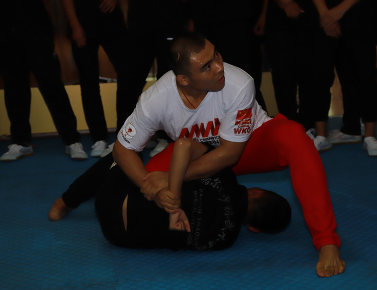 中国综合格斗国家队队员堂和斯与小运动员切磋