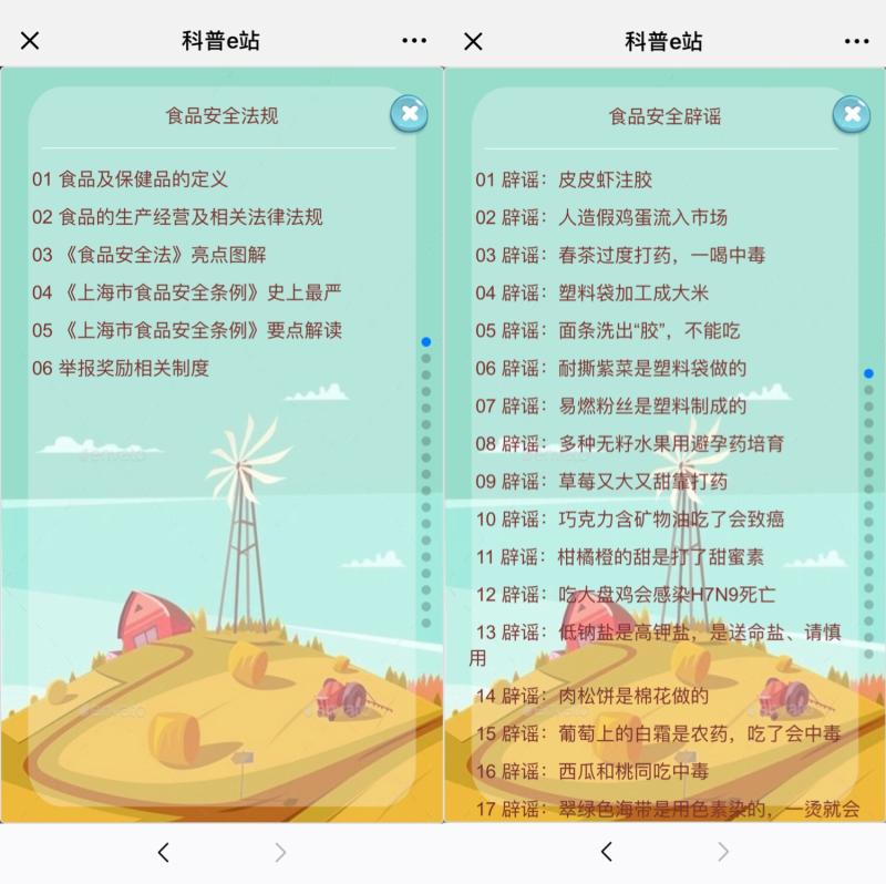 食安问题排行榜中,食品安全监管举措、食品安全谣言、食安违法处置也获得了超过80%的高关注度。记者注意到,针对市民最关心的食品安全问题,“科普e站”对被称为“史上最严”食品安全地方法规的《上海市食品安全条例》进行了亮点解读,食品安全辟谣篇则对“皮皮虾注胶”“人造假蛋”“塑料袋变大米”“棉花制成肉松饼”等网上流传的谣言进行了图文并茂的辟谣。食安知识篇针对上海市民餐饮习惯,特别开辟水产安全栏目,对上海禁止生产经营的水产品、菜肴进行图文双语科普。消费者在餐馆用餐前动动手指查阅一下线上科普站,就能知晓眼前的菜肴是否放心安全。