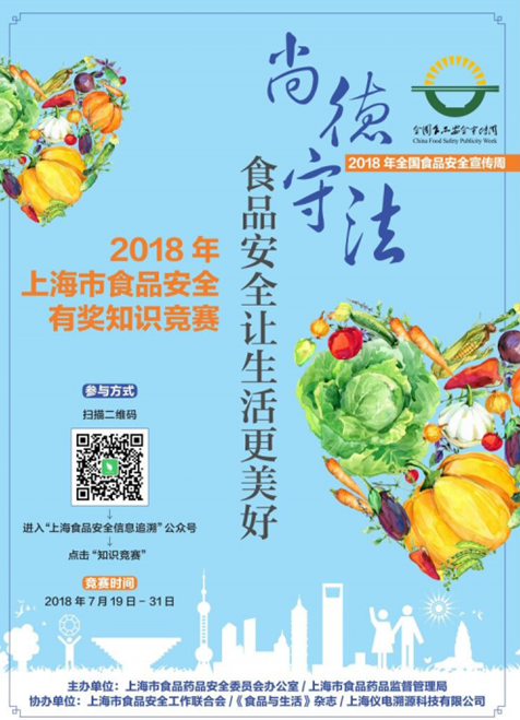 在宣传周期间,为进一步提升市民的食品安全满意度和知晓率,创建国家食品安全示范城市,由上海市食品药品安全委员会办公室举办的“2018年上海市食品安全有奖知识竞赛”将于2018年7月19日-31日举行,为期13天。