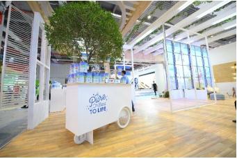展会现场,贝拉米以简洁、大气的设计向大家展示了品牌的有机理念。展位设计延续了品牌蓝白两色的主色调,以体现纯净的感觉;展台材质使用浅色系为主,搭配透明玻璃,强调整体空间通透感;同时在细节展示上加入天然物件搭配,看似随意的配饰方法不仅不显杂乱,反而让人感觉自然与温暖。总体而言,贝拉米通过对细节的考究,再次向大家诠释了品牌所坚持的有机理念。