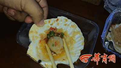 鲜活扇贝烤制出来后还有一个特点,就是比较肉质很有弹性,用筷子戳也不容易戳坏,而冷冻扇贝肉肉质很松散,筷子一戳就烂了。