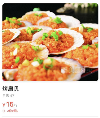 这家烤扇贝应付的连贝壳都不给带,然而他们家点菜系统上的图是这样↓