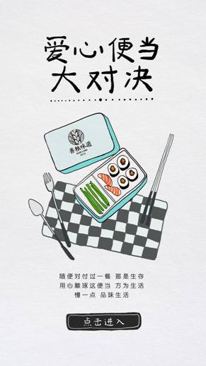 对于都市年轻群体而言,忙碌是常态,每日三餐敷衍了事也是无奈。善粮味道基于对用户痛点的把握,推出了“爱心便当大比拼”互动H5。希望他们能给自己预留多一点时间和空间,以精致的态度去生活,用心做饭,好好吃饭。