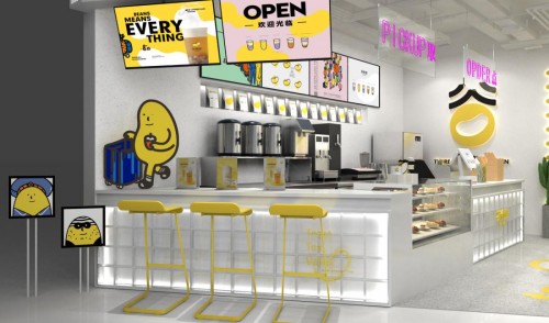 走进茶谷地,暖黄谷物式的logo设计在冷色调的石材背景中显得跳跃、活泼,工业风的铁艺与清新文艺的原木设施又交相辉映,不仅毫无违和感,整个空间更是呈现出一种与众不同的时尚调性。一侧的橱窗处,茶谷地甚至还特设了“自拍专区”,一应的拟人化谷物供顾客在这里进行趣玩自拍。当然,如果是茶谷地的资深“谷迷”,茶谷地设计感十足的手机壳,或许会助力“谷迷”们打开茶谷地的“贴身”陪伴模式。