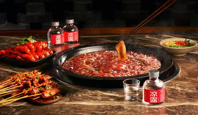 “45度、52度的凉露酒,与31度不同的是酒劲儿更足,是高度酒中绝无仅有的入口有凉感的酒,“吴佳介绍道,”入口有凉感,甘烈中溢出缕缕清凉;一口下去,随饱满的酒感缓缓升腾,唇齿间的甘冽与胸臆中的温热交融,燥辣的口舌被瞬间安抚,感官徐徐苏醒,不仅能感受到高度酒带来的甘烈醇厚,还能凉口舒肠胃,让你越辣越开心,吃辣更过瘾。”