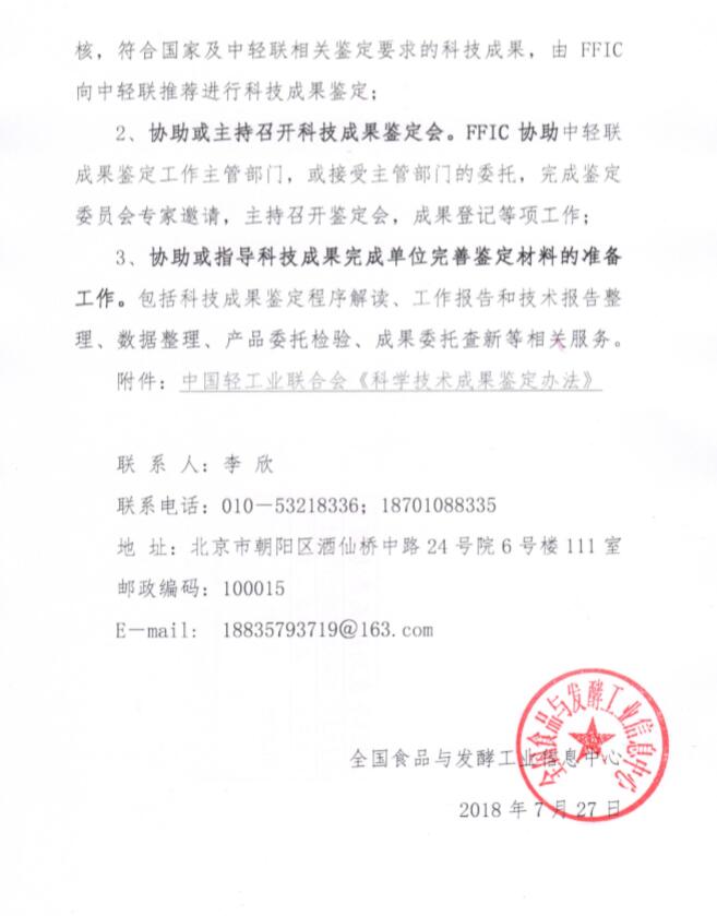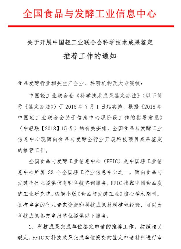 关于开展中国轻工业联合会科学技术成果鉴定推荐工作的通知